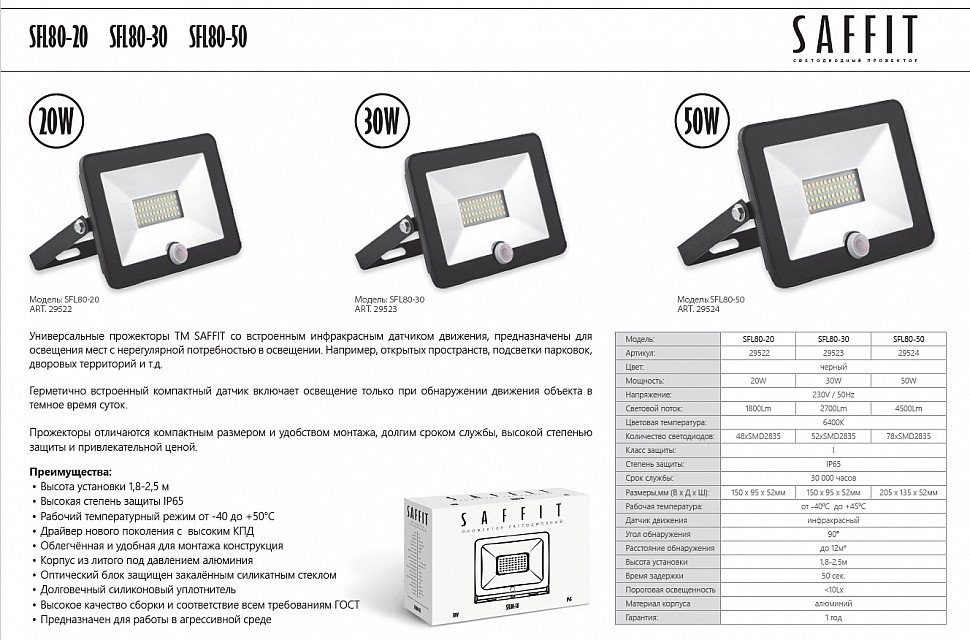 Технические характеристики прожектора с датчиком движения и сиреной