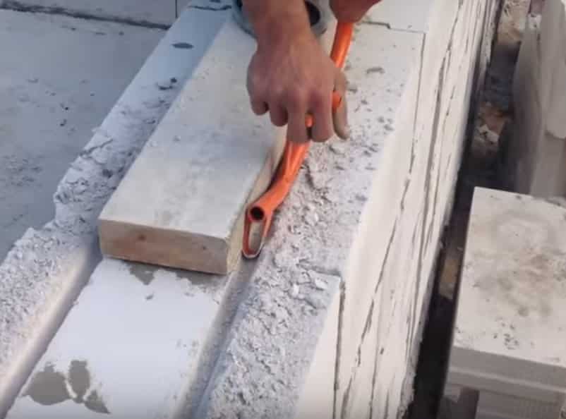 Кроме скрытой проводки коммуникаций, штробление выполняют и при монтаже стен из газобетонных блоков для установки армопояса между ярусами стены. Эти работы являются обязательными, так что при строительстве дома из газобетона без штробления обойтись невозможно, а его выполнение требует специального инструмента.
