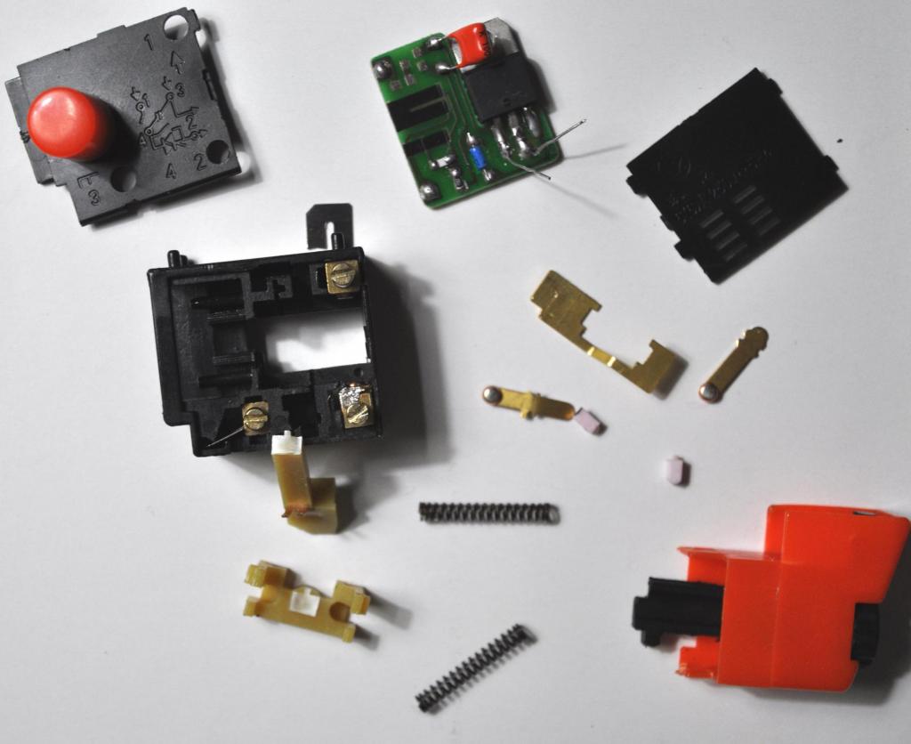 Такого вида поломки происходят из-за превышения допустимой нагрузки на аппарат и нарушений в его эксплуатации. Проявляются они в отказе инструмента включаться, в неисправности реверса или регуляторе оборотов. Чаще всего для восстановления работоспособности понадобится разобрать кнопку запуска и прочистить все места, связанные с электрическим контактом.