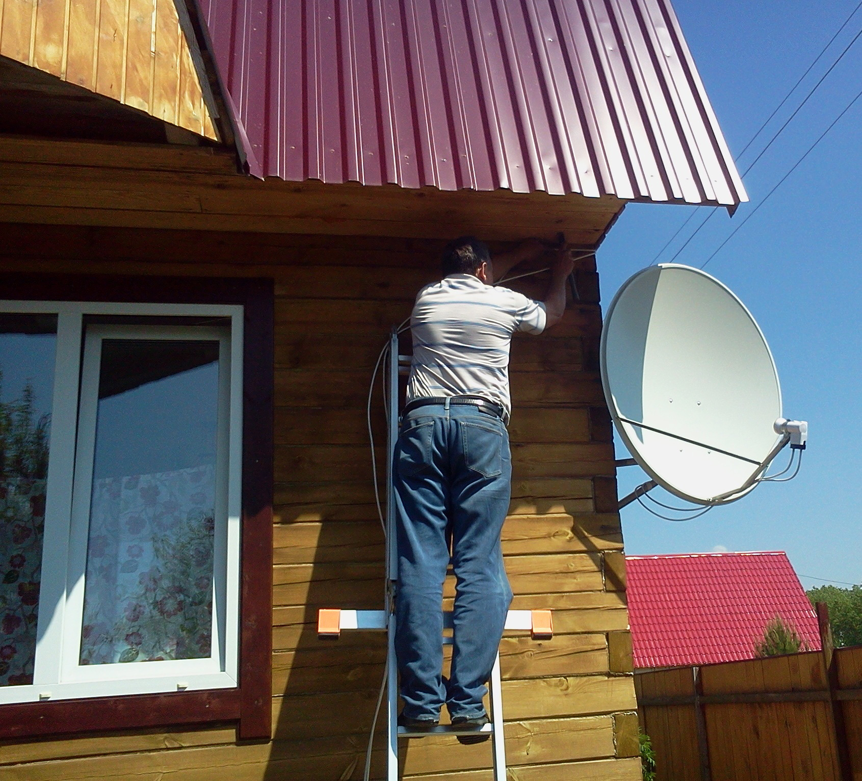 При наличии загородного дома или дачи, вероятнее всего, необходимо будет установить спутниковую тарелку на крышу дома, причем своими руками. Это выполнить относительно не сложно.