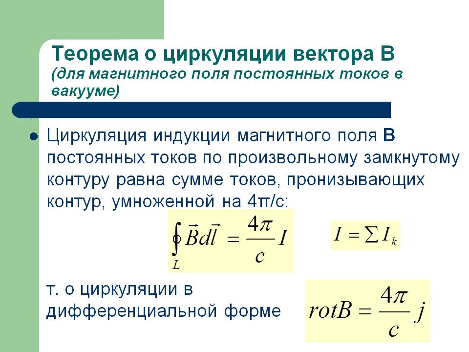 Другое название теоремы – закон Ампера, описывающий циркуляцию МП.