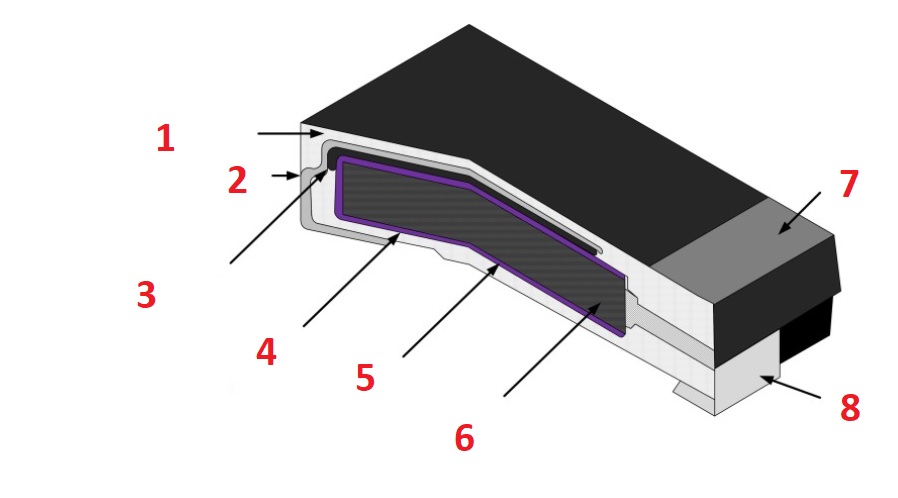 На концах выводов холодной сваркой крепят контакторы, которые впаивают в плату электросхемы. Контакты обозначают знаками «+» и «-». Электрические накопители такого типа называют полярными.