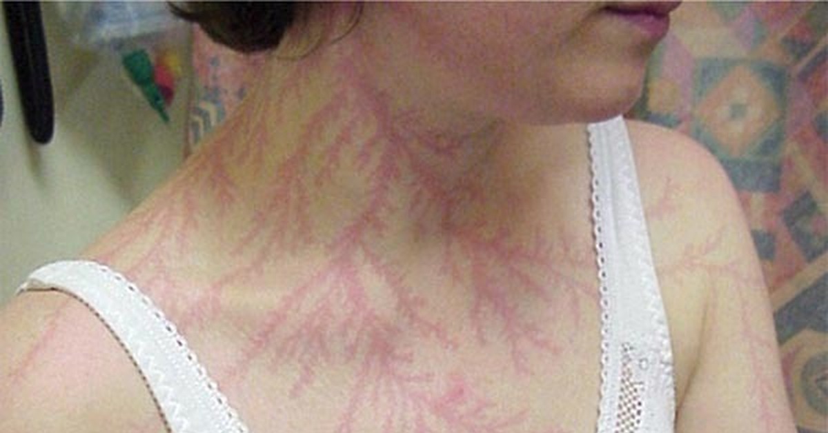 - электрические знаки на теле (метки)— получаются в результате поверхностных нарушений кожи человека и представляют собой явно выделенные пигменты на коже серого или серо-желтого цвета. Ожог на теле внешне схож с формой токоведущей части, к которой было произведено прикосновение;
