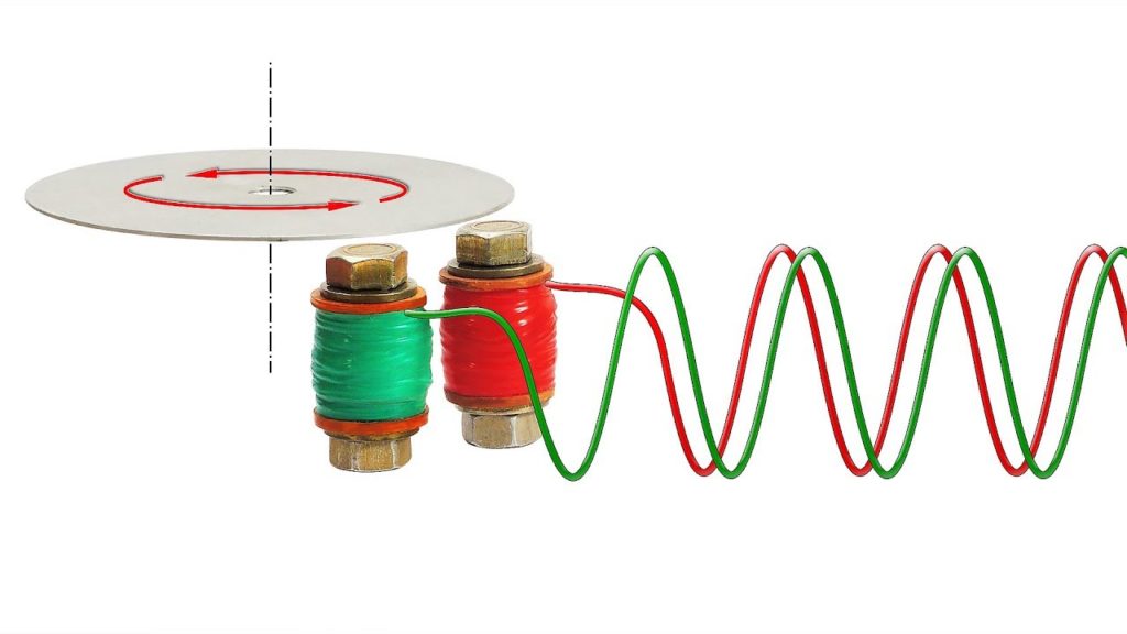 В результате возникает ток, непрерывно изменяющий направление: при движении в одном направлении он возрастает, достигая максимума, именуемого амплитудным значением, затем спадает, на какой-то момент становится равным нулю, потом вновь возрастает, но уже в другом направлении и также достигает максимального значения, спадает, чтобы затем вновь пройти через ноль, после чего цикл всех изменений возобновляется.