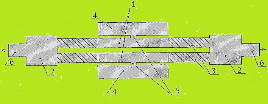 - 6 – места для закрепления резонатора и подключения цепи для силоизмерения.