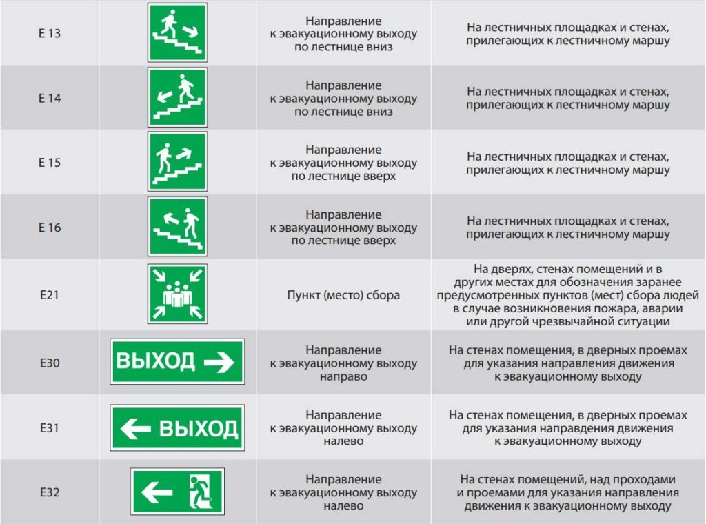 Количество устанавливаемых знаков зависит и от длины коридора. Среднее расстояние между пиктограммами составляет не больше 25 метров, при этом они должны дополнительно монтироваться в переходах и на поворотах.