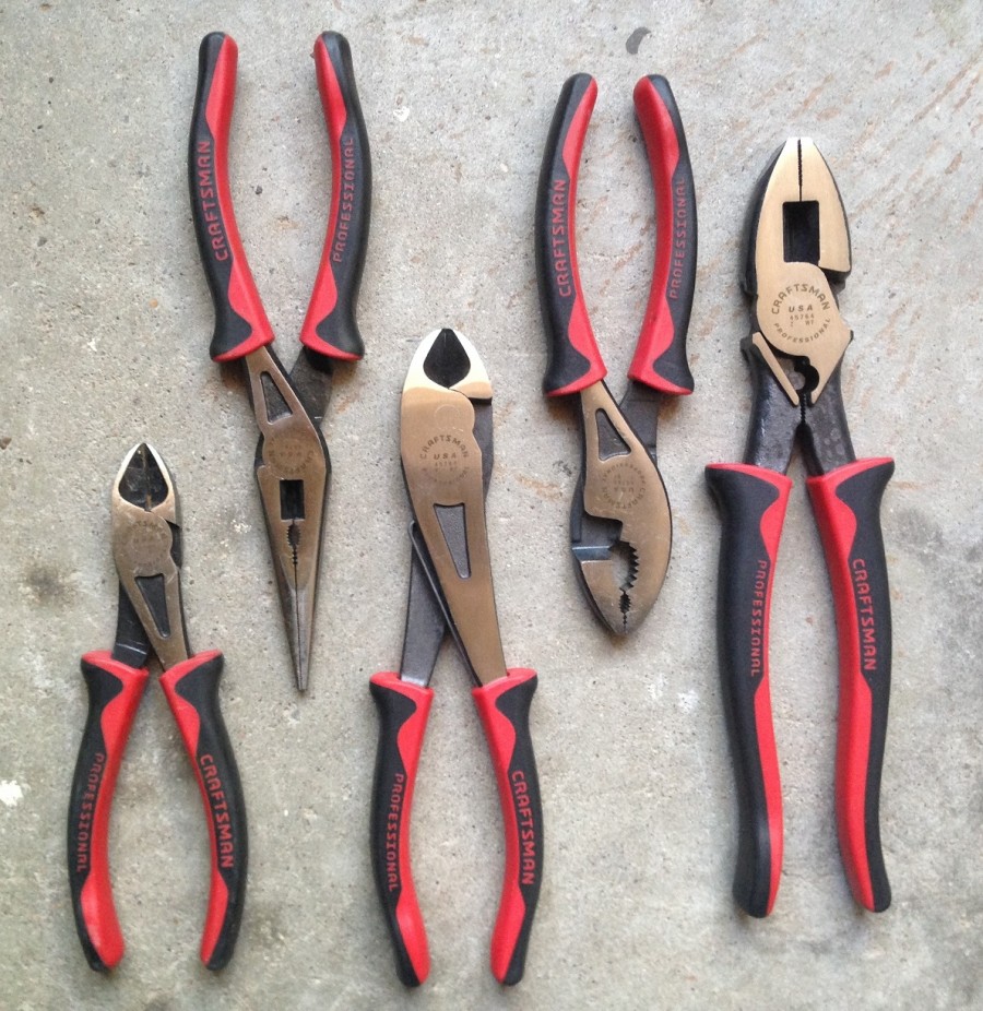 Как минимум понадобятся плоскогубцы с длинными и сужающимися к концу губками, круглогубцы с губками конического сечения и пара изогнутых длинногубцев разных размеров. Для металлообработки незаменимы усиленные пассатижи, имеющие ребра жёсткости на рукоятках и их сочленении с шарниром. Для откручивания слизанных гаек хорошо подойдут переставные клещи, также желательно иметь пассатижи со свободным шарниром для крупных деталей.