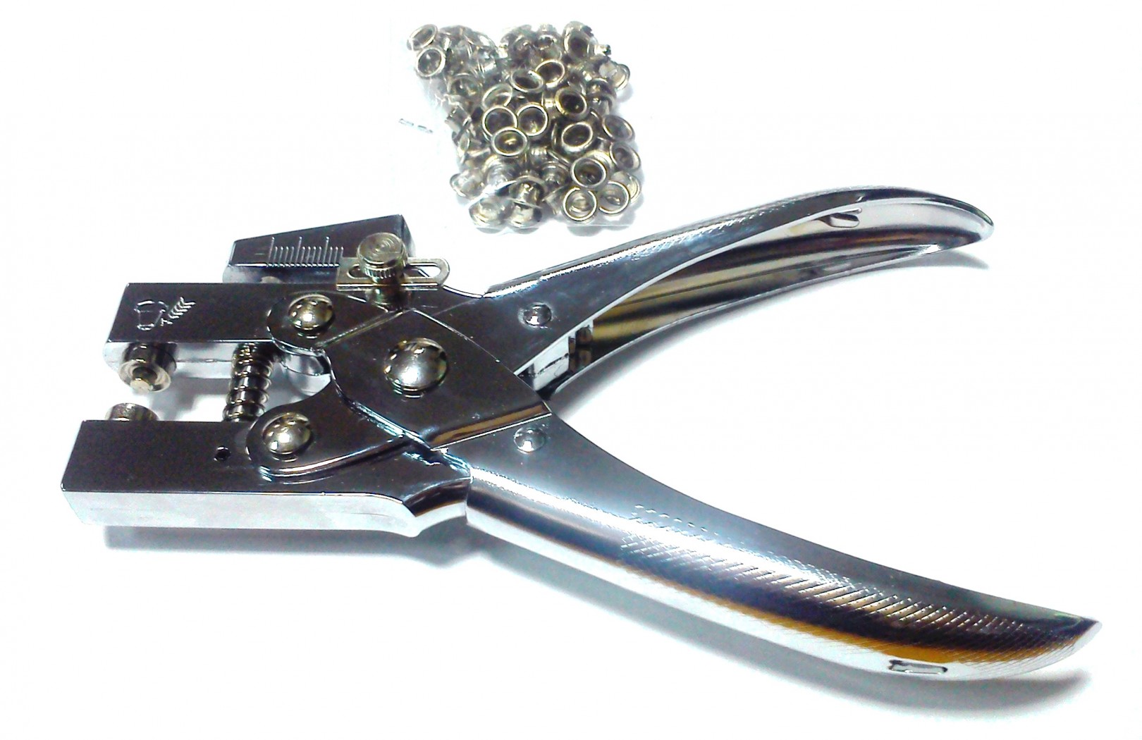 Люверсные пассатижи предназначены именно для того, чтобы устанавливать такие колечки. Таким предназначением и определяется внешний вид инструмента. Их можно принять за специфический дырокол.