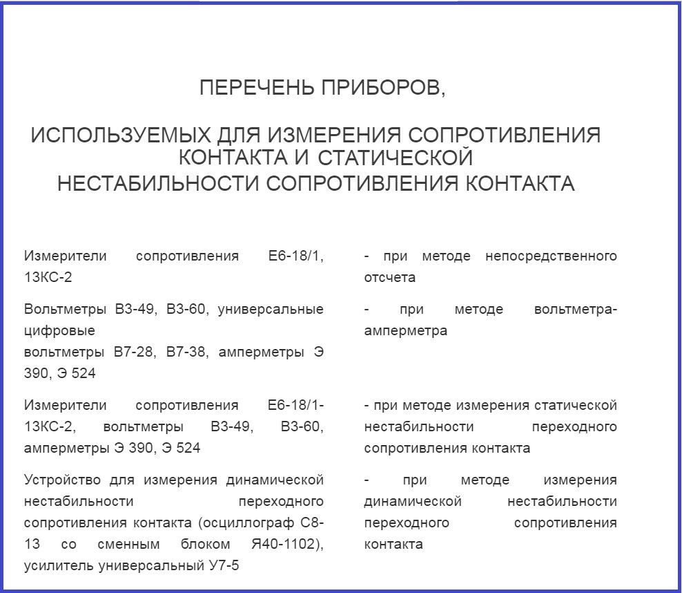 Переходное сопротивление контакта измеряют миллиомметром методом вольтметра и амперметра.