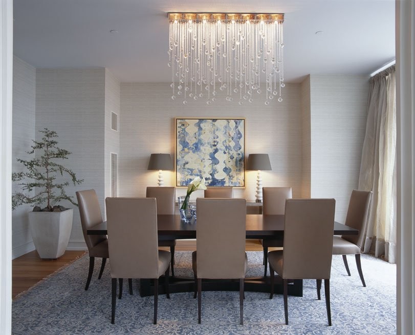 Подвесная люстра в интерьере гостиной должна выполнять следующие функции: