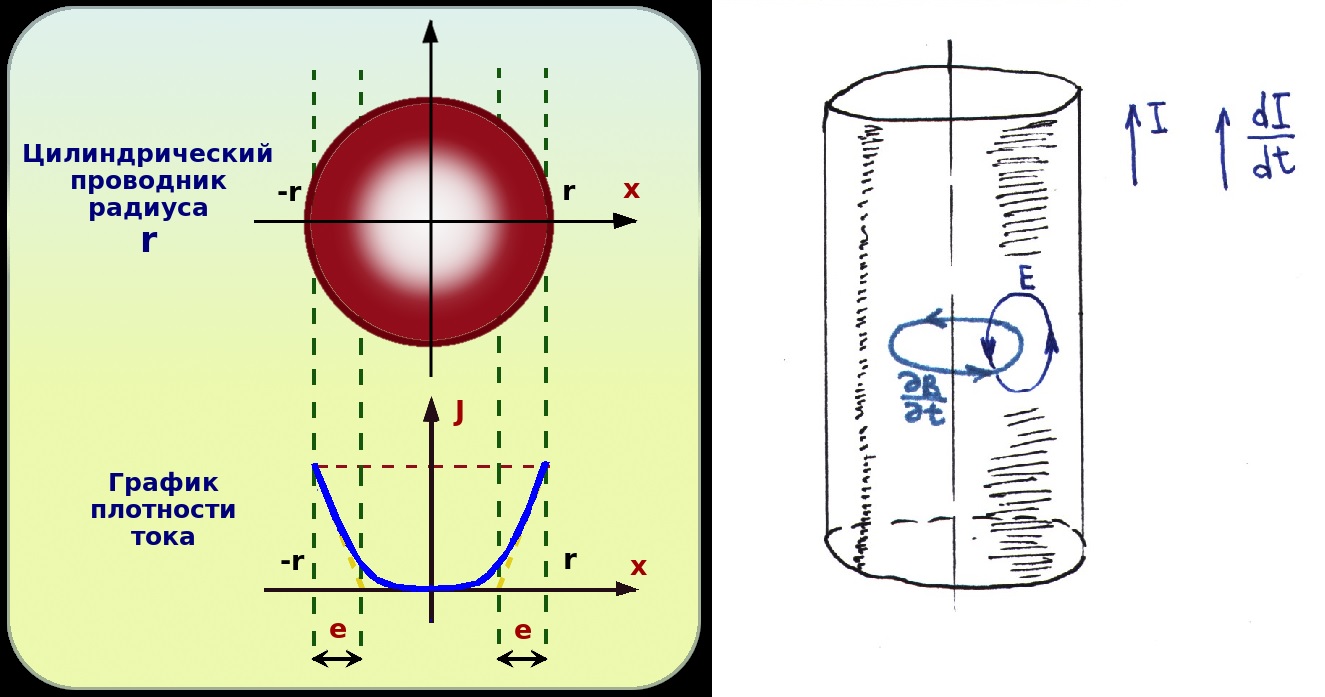Для объяснения причин явления можно использовать вторую часть пояснительной картинки выше. В графической форме показаны силовые воздействия, которые образуются переменным полем. Электрическая составляющая (Е) направлена противоположно току (I), что объясняет возникающее сопротивление и соответствующее уменьшение амплитуды. По мере приближения к поверхности будет проявляться обратный эффект. Он вызван совпадением векторов напряженностей.