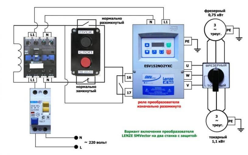 Из соображений безопасности эксплуатации прибора, при подключении частотника (или любого иного прибора) к сети питания, обязательно нужно устанавливать защитный автомат. Автомат устанавливается перед частотником.