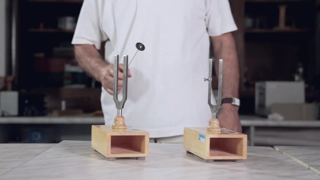 Важность совпадения частоты (ритма) легко можно увидеть в эксперименте с двумя камертонами. Возьмем те, что имеют одинаковую частоту, и поставим довольно близко друг от друга