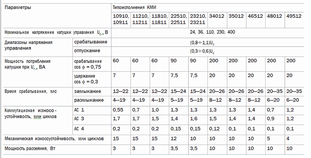 Некоторые характеристики магнитных пускателей можно посмотреть в таблице