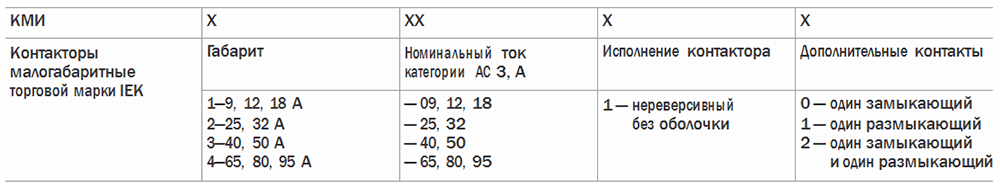 При подборе контакторов КМИ обращайте внимание на структуру условного обозначения
