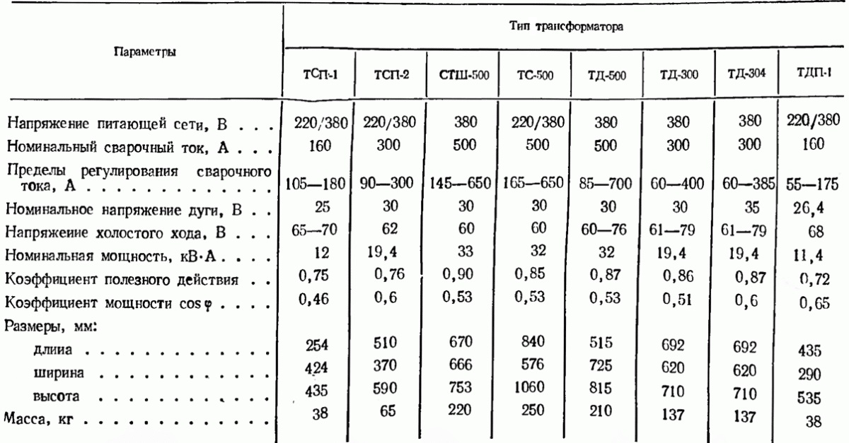 Промышленные образцы трансформаторного оборудования представлены на отечественном рынке изделиями под заводским обозначением ТД и ТДМ. Популярностью отечественного покупателя пользуются модели марки ТДМ с величинами сварочного тока 315, 400 и 500 Ампер соответственно.