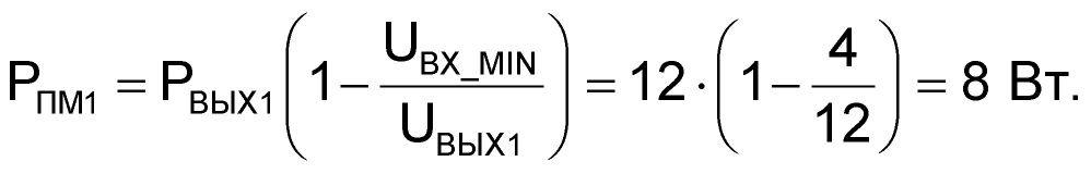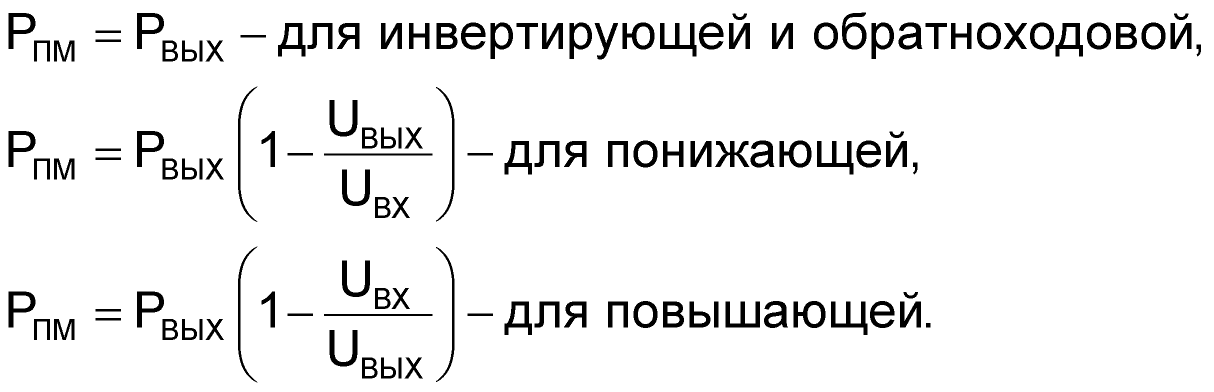 В общем случае, величина преобразуемой мощности может быть меньше мощности преобразователя. Это связано с тем, что за счет особенностей схемотехники силовой части часть энергии поступает в нагрузку непосредственно из источника первичного питания (с входа преобразователя), минуя магнитное поле дросселя. Этот вопрос подробно рассмотрен в [], где и получены формулы, позволяющие рассчитать величину РПМ для четырех наиболее распространенных («базовых») схем: