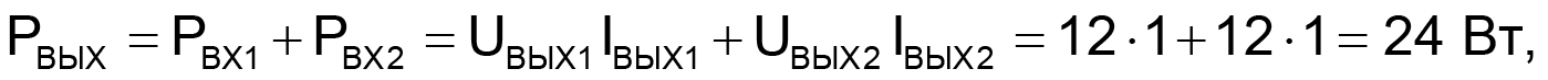 С чего нужно начинать расчет? Самым главным параметром любого источника питания является мощность. Именно от нее напрямую зависят все остальные параметры преобразователя, в том числе масса, габариты и стоимость. В данном случае выходную мощность РВЫХ можно легко определить как сумму мощностей обоих каналов: