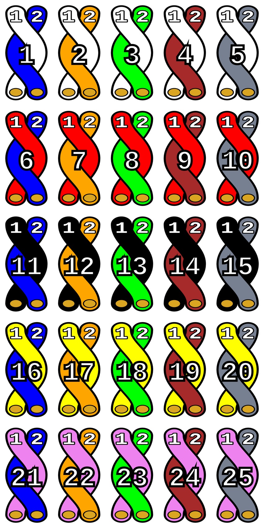 Каждая пара проводников отличается уникальным сочетанием цветов. Т.е. в любом кабеле будет только одна бело-синяя или чёрно-зелёная группа. Сделано это для того, чтобы различать провода между собой, ведь это необходимо для правильного их подключения. Всего в маркировке используется 10 цветов, благодаря которым кабель проще обжать в штекере для подключения к ПК или прочим сетевым устройствам.