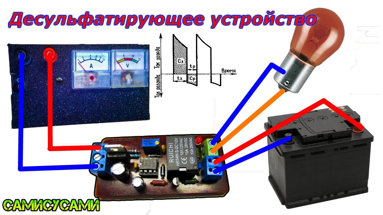 Цикл повторяется несколько раз, сульфатные кристаллы растворяются, сопротивление падает, время разряда батареи увеличивается. Процесс очистки пластин от осадка должен быть непрерывным. Это лучший способ восстановления старого или необслуживаемого аккумулятора автомобиля.