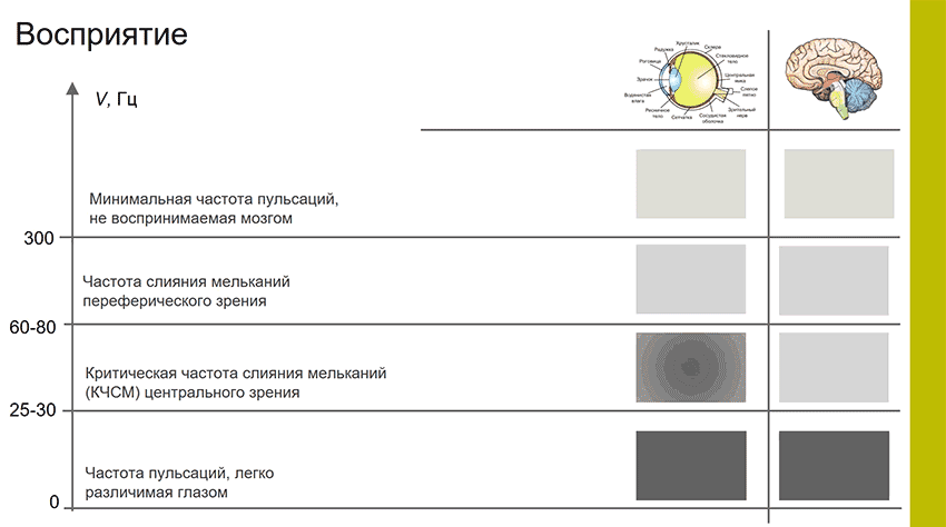 Оно зависит от того, насколько качественный драйвер установлен в источнике света. Это устройство, сглаживающее пульсацию. Добросовестные производители снабжают изделия стабилизатором электропитания, при котором коэффициент пульсации не выше 10%, что считается нормой для здоровья.